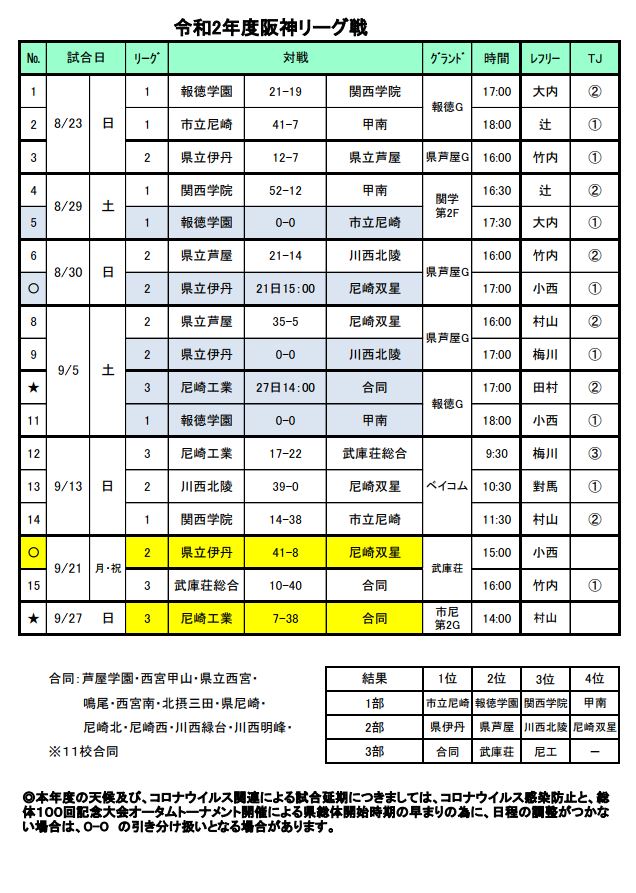 令和2年度 阪神リーグ戦 最終結果