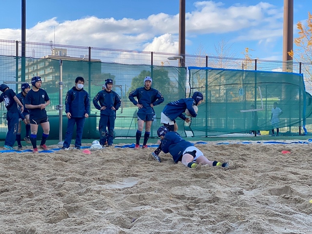 ビーチバレーコートでの練習